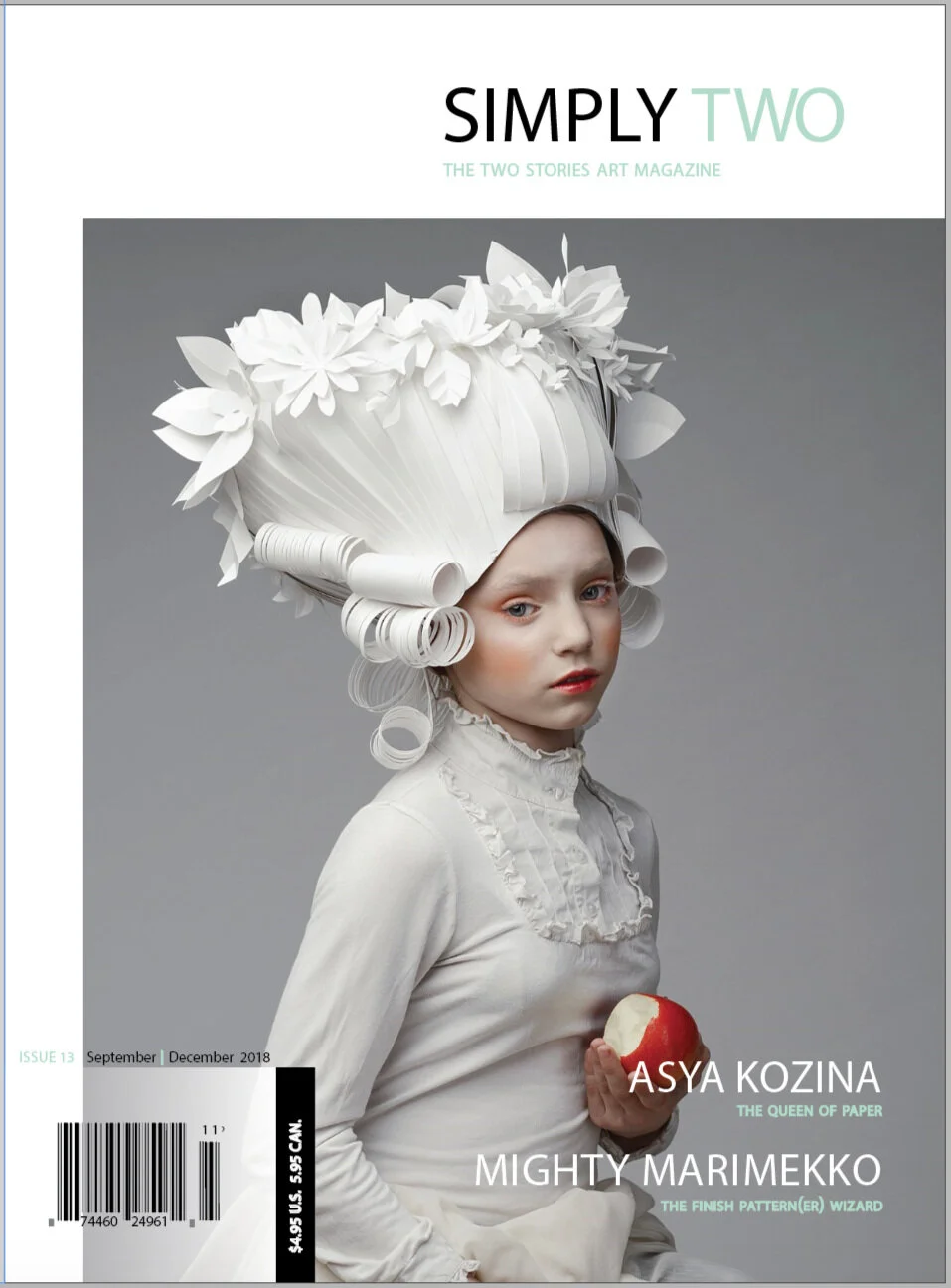 Simply Two is a quarterly art magazine. Its simplistic design provides easy eye flow and minimal visual noise. The magazine offers only two articles, covering new artists in each issue. Simply Two is a quiet printed place, where everyone can relax and enjoy a moment of serenity.